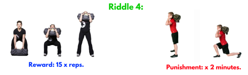 1. Barbell Squats/KB Swings: x 8-10 reps/ 16 x reps with swings.
