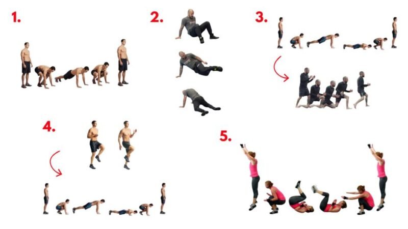 What it builds: Reactive strength, trunk stability, upper-body endurance, and change-of-direction conditioning under fatigue.