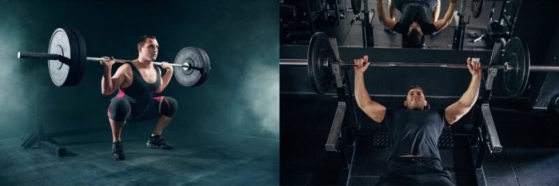 Appropriate support — Use a spotter or safety system when lifting heavy on bench or squat. Warm up properly — not by loading the bar cold.